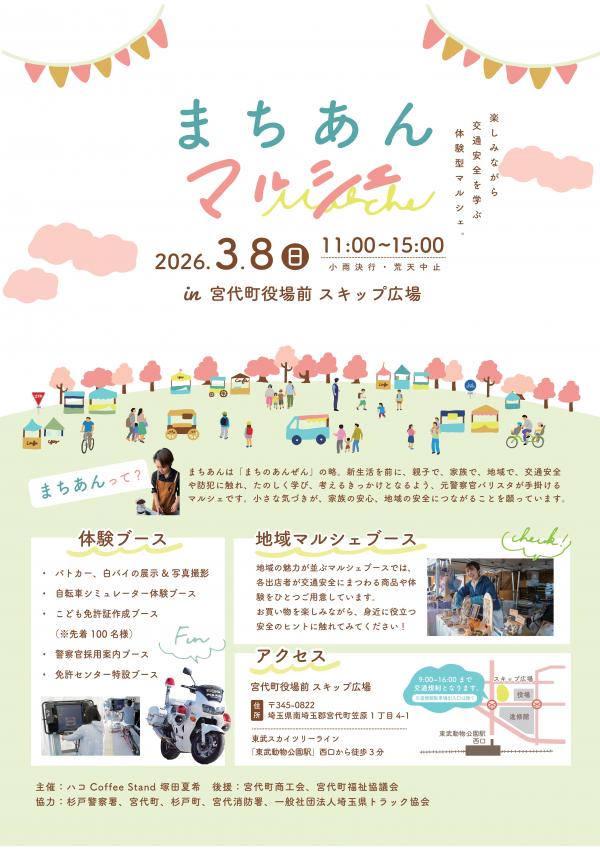 2026.04.24 (金) 10時~11時30分 カンタン☆離乳食教室 HOME&あそびにいこうTOP保健センター学び 2026.03.21 (土) 10時30分~11時 おはなしポケット「おはなし会」 HOME&あそびにいこうTOP公民館学び 2026.03.15 (日) 11時~15時 321の市 HOME&あそびにいこうTOPココティすぎと遊び 2026.03.08 (日) 11時~15時 まちあんマルシェ HOME&あそびにいこうTOP学び遊び